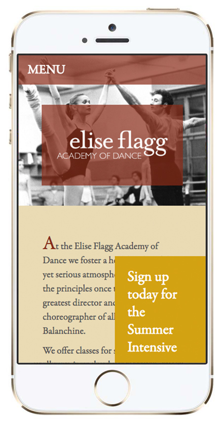 Elise Flagg Academy of Dance is a dance studio offering basic dance classes all the way through a pre-professional ballet program. The studio was founded by Elise Flagg, a student of George Balanchine, one of the most prolific choreographers of his time. We were excited about the opportunity to promote such an excellent program for young dancers through a new site for Elise!