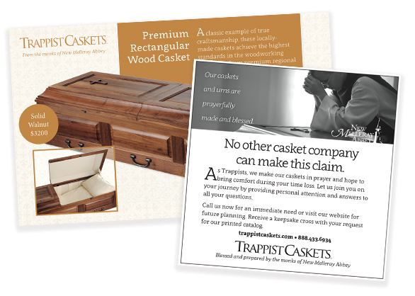 PrintSince building the Trappist Caskets site, we've gone on to market their product in print. From newspaper and magazine ads to point of purchase display, we've enjoyed sharing about the beautiful and sacred work done by the monks of New Melleray.